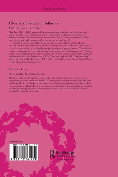Introduction: Ellen Terry and Her Circle - Formal Introductions and Informal Encounters, Katharine Cockin; Part 1 Ellen Terry's Influences on Others; Chapter 1 Introduction: Ellen Terry's Lost Lives, Nina Auerbach; Chapter 2 Ellen Terry, Bram Stoker and the Lyceum's Vampires, Catherine Wynne; Chapter 3, Veronica Franklin Gould; Chapter 4 The Burden of Eternal Youth: Ellen Terry and the Mistress of the Robes, Jenny Bloodworth; Chapter 5 The after Voice of Ellen Terry, Katherine E. Kelly; Part 2 Family Influences; Chapter 6 Introduction: Edward Gordon Craig - Prophet or Charlatan?, Michael Holroyd; Chapter 7 E. W. G. and E. G. C: Father and Son, J. Michael Walton; Chapter 8 Lewis Carroll, Ellen Terry and the Stage Career of Menella 'Minna' Quin: A Very Kind and Christian Deed', Richard Foulkes; Chapter 9, Roberta Gandolfi; Chapter 10 Velona Pilcher and Dame Ellen Terry (1926), Charlotte Purkis; Chapter 11 Ellen Terry: Preserving the Relics and Creating the Brand, Katharine Cockin; Chapter 12 Describing the Ellen Terry and Edith Craig Archive, Julian Halliwell, Katharine Cockin;
