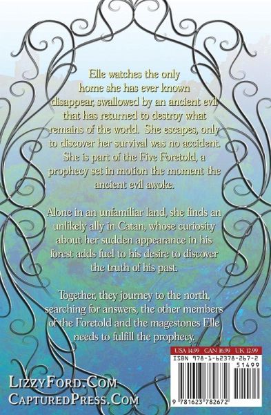 Elle watches the only home she has ever known disappear, swallowed by an ancient evil that has returned to destroy what remains of the world. She escapes, only to discover her survival was no accident. She is part of the Five Foretold, a prophecy set in motion the moment the ancient evil awoke. Alone in an unfamiliar land, she finds an unlikely ally in Catan, whose curiosity about her sudden appearance in his forest adds fuel to his desire to discover the truth of his past. Together, they journey to the north, searching for answers, the other members of the Foretold and the magestones Elle needs to fulfill the prophecy.