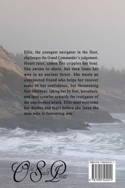 Ellie is a story about losing your way and finding it again. Ellie, the youngest navigator in the fleet, challenges the authority of her uncle Astreya, the Grand Commander. Only hours later, cannon shots cripple her boat, she falls overboard and is lost ashore. Ellie tries to return home to Matris, but unexpected friends and threatening foes intervene. As her uncle, sister, and cousins search for her, Ellie is forced to travel by foot, horseback, and land crawler to the Castle, where the Governor is fomenting war.