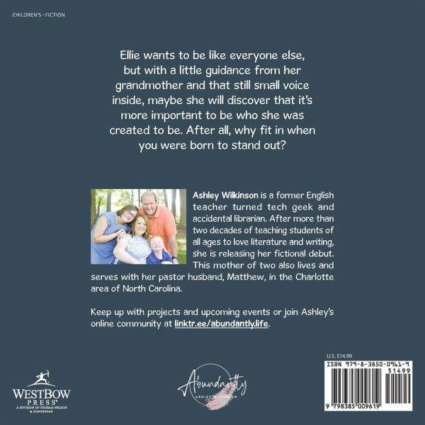 Ellie wants to be like everyone else, but with a little guidance from her grandmother and that still small voice inside, maybe she will discover that it's more important to be who she was created to be. After all, why fit in when you were born to stand out?