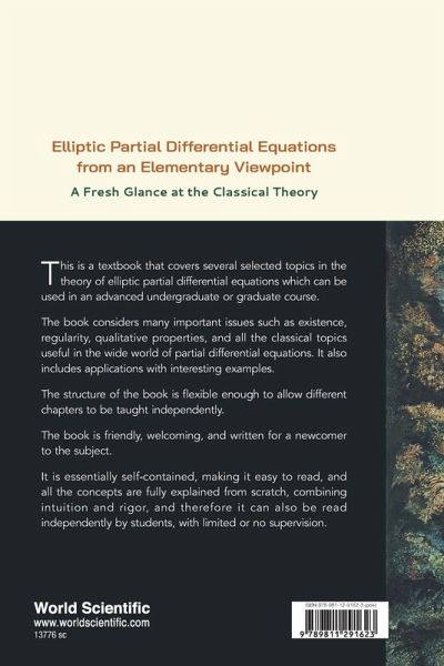 This is a textbook that covers several selected topics in the theory of elliptic partial differential equations which can be used in an advanced undergraduate or graduate course. The book considers many important issues such as existence, regularity, qualitative properties, and all the classical topics useful in the wide world of partial differential equations. It also includes applications with interesting examples. The structure of the book is flexible enough to allow different chapters to be taught independently. The book is friendly, welcoming, and written for a newcomer to the subject. It is essentially self-contained, making it easy to read, and all the concepts are fully explained from scratch, combining intuition and rigor, and therefore it can also be read independently by students, with limited or no supervision.