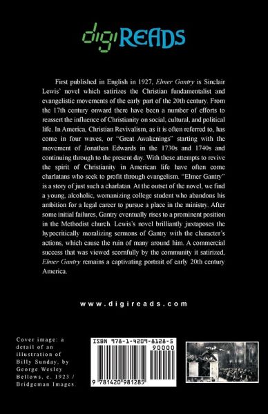 First published in English in 1927, "Elmer Gantry" is Sinclair Lewis' novel which satirizes the Christian fundamentalist and evangelistic movements of the early part of the 20th century. From the 17th century onward there have been a number of efforts to reassert the influence of Christianity on social, cultural, and political life. In America, Christian Revivalism, as it is often referred to, has come in four waves, or "Great Awakenings" starting with the movement of Jonathan Edwards in the 1730s and 1740s and continuing through to the present day. With these attempts to revive the spirit of Christianity in American life have often come charlatans who seek to profit through evangelism. "Elmer Gantry" is a story of just such a charlatan. At the outset of the novel, we find a young, alcoholic, womanizing college student who abandons his ambition for a legal career to pursue a place in the ministry. After some initial failures, Gantry eventually rises to a prominent position in the Methodist church. Lewis's novel brilliantly juxtaposes the hypocritically moralizing sermons of Gantry with the character's actions, which cause the ruin of many around him. A commercial success that was viewed scornfully by the community it satirized, "Elmer Gantry" remains a captivating portrait of early 20th century America. This edition is printed on premium acid-free paper.
