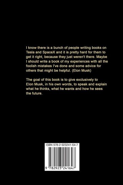About writing about him and his companies, Elon Musk said: >The goal of this book is to give exclusively to Elon Musk, in his own words, to speak and explain what he thinks, what he wants and how he sees the future. By listening to him speak and trying to explain his views and ideas, I discovered a man with a sincere goal to change the world and make it a better place. He is not only very intelligent, an excellent businessman, but also very modest and sincere.