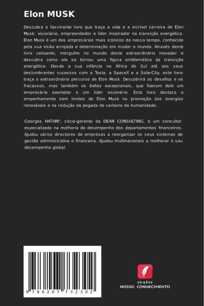 Descubra o fascinante livro que traça a vida e a incrível carreira de Elon Musk: visionário, empreendedor e líder inspirador na transição energética. Elon Musk é um dos empresários mais icónicos do nosso tempo, conhecido pela sua visão arrojada e determinação em mudar o mundo. Através deste livro cativante, mergulhe no mundo deste extraordinário inovador e descubra como ele se tornou uma figura emblemática da transição energética. Desde a sua infância na África do Sul até aos seus deslumbrantes sucessos com a Tesla, a SpaceX e a SolarCity, este livro traça o extraordinário percurso de Elon Musk. Descobrirá os desafios e os fracassos, mas também os êxitos excepcionais, que fizeram dele um empresário exemplar e um líder visionário. Este livro destaca o empenhamento sem limites de Elon Musk na promoção das energias renováveis e na redução da pegada de carbono da humanidade.