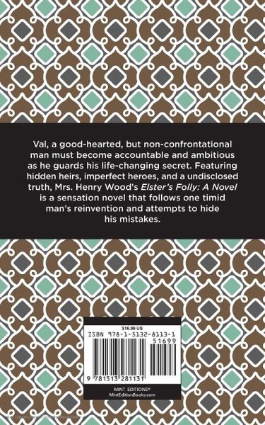 As the youngest son of a noble family, Val has always been sheltered. Though he is friendly and good-hearted, Val rarely takes initiative, as most of his life is planned for him. However, when Val is forced to hide a life-altering secret about himself, he is finally motivated to be accountable for himself, especially in his romantic endeavors. As he tries to preserve his reputation and suppress his mistakes, Val begins to transform into a new man, but how long will the change last? As he continues his journey, his secret inevitably looms over him, shrouding his life with mystery, manipulation, and even tragedy. While the mystery unfolds, Val must confront the consequences of people uncovering his secret, facing surprising reactions and earning unlikely allies. With elements of romance and mystery, Mrs. Henry Wood's Elster's Folly: A Novel is thrilling from start to finish. Featuring descriptive prose and vivid settings, Elster's Folly: A Novel depicts the conflicts of Victorian culture with life-like characters and compelling drama. Set in a charming aristocratic village in the midland of England, this classic sensation novel offers insight on the lives of Victorian aristocrats through the portrayal of well-developed characters, secrets, and class dynamics. First published in 1866, Mrs. Henry Wood's Elster's folly: A Novel remains to be a fascinating tale even over one-hundred and fifty years later. This edition of Elster's Folly: A Novel by Mrs. Henry Wood now features an eye-catching new cover design and is printed in a font that is both modern and readable. With these accommodations, this edition of Elster's Folly: A Novel crafts an accessible and pleasant reading experience for modern audiences while restoring the original sentiment and drama of Mrs. Henry Wood's work. Since our inception in 2020, Mint Editions has kept sustainability and innovation at the forefront of our mission. Each and every Mint Edition title gets a fresh, professionally typeset manuscript and a dazzling new cover, all while maintaining the integrity of the original book. With thousands of titles in our collection, we aim to spotlight diverse public domain works to help them find modern audiences. Mint Editions celebrates a breadth of literary works, curated from both canonical and overlooked classics from writers around the globe.