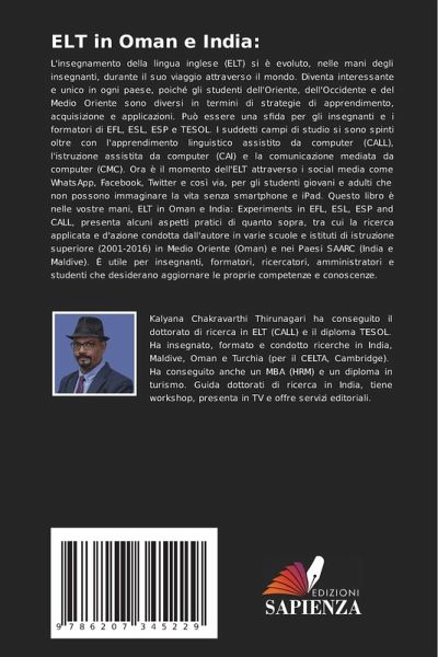 L'insegnamento della lingua inglese (ELT) si è evoluto, nelle mani degli insegnanti, durante il suo viaggio attraverso il mondo. Diventa interessante e unico in ogni paese, poiché gli studenti dell'Oriente, dell'Occidente e del Medio Oriente sono diversi in termini di strategie di apprendimento, acquisizione e applicazioni. Può essere una sfida per gli insegnanti e i formatori di EFL, ESL, ESP e TESOL. I suddetti campi di studio si sono spinti oltre con l'apprendimento linguistico assistito da computer (CALL), l'istruzione assistita da computer (CAI) e la comunicazione mediata da computer (CMC). Ora è il momento dell'ELT attraverso i social media come WhatsApp, Facebook, Twitter e così via, per gli studenti giovani e adulti che non possono immaginare la vita senza smartphone e iPad. Questo libro è nelle vostre mani, ELT in Oman e India: Experiments in EFL, ESL, ESP and CALL, presenta alcuni aspetti pratici di quanto sopra, tra cui la ricerca applicata e d'azione condotta dall'autore in varie scuole e istituti di istruzione superiore (2001-2016) in Medio Oriente (Oman) e nei Paesi SAARC (India e Maldive). È utile per insegnanti, formatori, ricercatori, amministratori e studenti che desiderano aggiornare le proprie competenze e conoscenze.