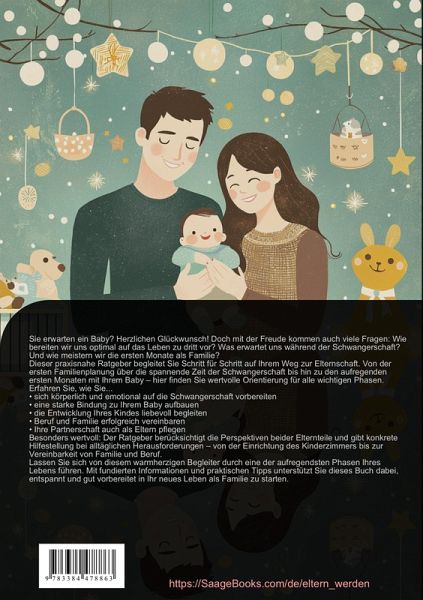 Dieser praxisnahe Ratgeber begleitet werdende Eltern auf ihrem Weg in ein neues Lebenskapitel. Als umfassendes Baby-Buch für Eltern bietet er wertvolle Orientierung von der ersten Überlegung, eine Familie zu gründen, bis hin zur aktiven Elternschaft.Der erste Teil widmet sich der Familienplanung und bereitet angehende Mütter und Väter auf die Schwangerschaft vor. Dabei werden sowohl biologische als auch emotionale Aspekte beleuchtet. Werdende Väter finden speziell auf sie zugeschnittene Informationen, wie sie ihre neue Rolle als Papa bestmöglich ausfüllen können.Im Bereich Schwangerschaft und Geburt erhalten werdende Eltern detaillierte Informationen zu körperlichen Veränderungen, Ernährung und Bewegung sowie verschiedenen Geburtsmöglichkeiten. Der Ratgeber für Eltern behandelt auch die erste Zeit nach der Geburt mit praktischen Hinweisen zum Stillen, zur Säuglingspflege und zu wichtigen Behördengängen.Ein weiterer Schwerpunkt liegt auf der Entwicklung und Bindung. Hier erfahren Eltern, wie sie eine sichere Bindung zu ihrem Kind aufbauen und seine Entwicklung optimal begleiten können. Praktische Tipps zur altersgerechten Förderung und Gestaltung des Familienalltags runden diesen Bereich ab.Das Baby-Eltern-Buch thematisiert zudem wichtige Aspekte wie Gesundheit, Pflege und Ernährung des Kindes. Auch die Vereinbarkeit von Familie und Beruf sowie finanzielle Planungen werden ausführlich behandelt.Besondere Aufmerksamkeit wird der Partnerschaft gewidmet: Wie können Eltern werden, ohne ihre Beziehung zu vernachlässigen? Wie gelingt eine faire Aufgabenverteilung? Dieser Elternratgeber gibt konkrete Anregungen für eine gelungene Balance zwischen den verschiedenen Lebensbereichen.Dieses Buch wurde unter Verwendung innovativer Technologien wie Künstlicher Intelligenz sowie eigens entwickelter Tools erstellt - etwa bei der Ideenfindung, der Recherche, dem Schreiben, dem Lektorat, der Qualitätssicherung und der Gestaltung dekorativer Illustrationen.So möchten wir Ihnen ein besonders stimmiges, modernes und noch hochwertigeres Leseerlebnis bieten.
