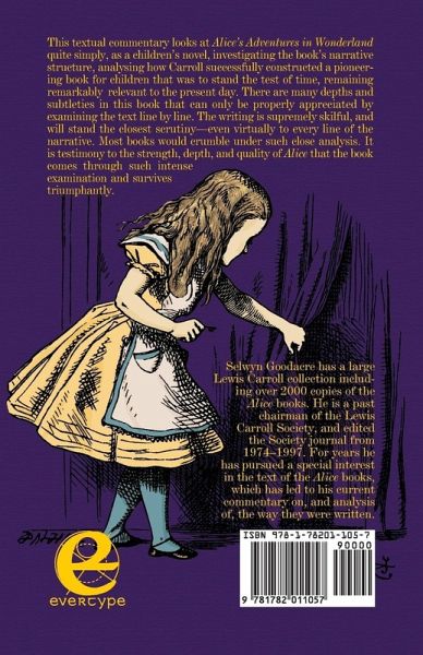 This textual commentary looks at "Alice's Adventures in Wonderland" quite simply, as a children's novel, investigating the book's narrative structure, analysing how Carroll successfully constructed a pioneering book for children that was to stand the test of time, remaining remarkably relevant to the present day. There are many depths and subtleties in this book that can only be properly appreciated by examining the text line by line. The writing is supremely skilful, and will stand the closest scrutiny-even virtually to every line of the narrative. Most books would crumble under such close analysis. It is testimony to the strength, depth, and quality of "Alice" that the book comes through such intense examination and survives triumphantly. ---- Selwyn Goodacre has a large Lewis Carroll collection including over 2000 copies of the "Alice" books. He is a past chairman of the Lewis Carroll Society, and edited the Society journal from 1974-1997. For years he has pursued a special interest in the text of the "Alice" books, which has led to his current commentary on, and analysis of, the way they were written.