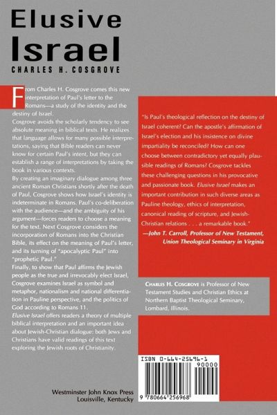 Many Bible interpreters assume a biblical text has only one right meaning and that it can be found if the reader uses the right methods. Charles Cosgrove, on the other hand, recognizes that language often admits multiple meanings and that scholars must deal with several sensible readings. As an example, "Elusive Israel" examines the identity of Israel in Romans 11, arguing for three equally plausible interpretations.