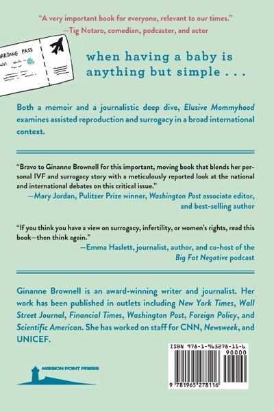 A profound exploration of assisted reproduction and surrogacy In Elusive Mommyhood: An Investigative Reporter's Personal Journey into IVF and Surrogacy, international journalist Ginanne Brownell, whose work has been featured in publications including The New York Times, Wall Street Journal and Financial Times, embarks on a profound exploration of assisted reproduction and surrogacy that combines intimate memoir with rigorous journalism. This groundbreaking book delves into the complex world of fertility treatments and surrogacy from a global perspective, shedding light on the evolving debates, historical contexts, and personal stories that shape this contentious field.Journey through the feminist arguments that both challenge and champion surrogacy and uncover the global history of IVF and surrogacy. Learn about the motivations behind women's decisions to become carriers and hear from the adult children born through these technologies. Engage with the current discussions and debates on donor conception and understand why many countries are reevaluating their IVF and surrogacy laws. The book culminates with a pivotal narrative of the author's heavy involvement in the passage of the Michigan Family Protection Act-a landmark piece of legislation signed into law by Governor Gretchen Whitmer in April 2024. This historic reform marks a significant shift by decriminalizing surrogacy in Michigan-the last US state to do so. It is also broadly the first piece of legislation nationally around fertility treatments and surrogacy since the Alabama Supreme Court ruling earlier in the year. Elusive Mommyhood is a compelling blend of personal reflection and investigative insight, offering readers a comprehensive look at the intersections of law, ethics, and human experience in the world of assisted reproduction.