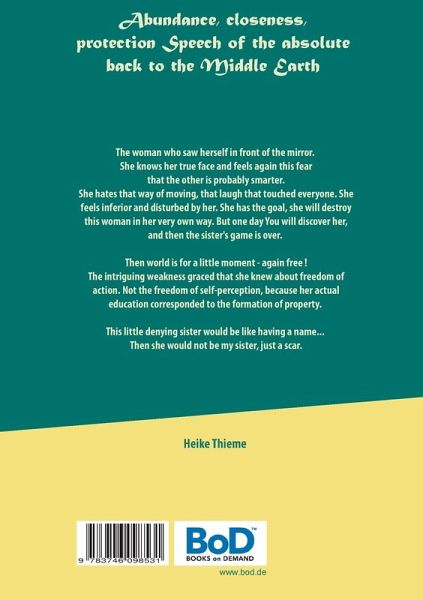 The woman who saw herself in front of the mirror. She knows her true face and feels again this fear that the other is probably smarter. She hates that way of moving, that laugh that touched everyone. She feels inferior and disturbed by her. She has the goal, she will destroy this woman in her very own way. But one day You will discover her, and then the sister's game is over. Then world is for a little moment - again free !The intriguing weakness graced that she knew about freedom of action. Not the freedom of self-perception, because her actual education corresponded to the formation of property. This little denying sister would be like having a name... Then she would not be my sister, just a scar.