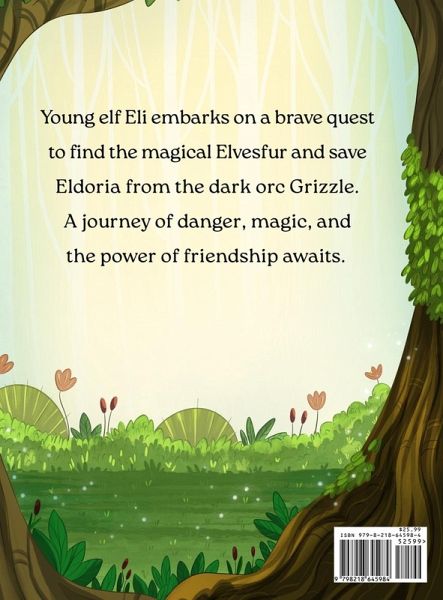 In the heart of the enchanted land of Valdoria lies Eldoria, a mystical forest filled with ancient secrets, magical creatures, and hidden treasures. But darkness is creeping into this peaceful realm, threatening to plunge it into shadow forever. The young elf Eli dreams of adventure, but he never expected to be the one destined to save his home. Eli's peaceful life in Eldoria takes a sudden turn when strange occurrences hint at a growing danger. The trees whisper of a looming darkness, and ancient creatures begin to vanish. Legends speak of the powerful Elvesfur, an enchanted artifact that can shield Eldoria from harm-but only if it's found in time. Driven by his sense of duty and love for his home, Eli embarks on a quest that will change him forever. Along the way, Eli is joined by an unforgettable cast of companions: a clever squirrel who always seems to have a plan, a wise owl who carries the wisdom of ages, and a tiny fairy with a heart full of courage. Together, they navigate through enchanted caves, cross mystical rivers, and brave the dangers lurking in shadowy forests. Each step brings them closer to the legendary Elvesfur-but also closer to the sinister orc, Grizzle, who seeks the artifact's power for his dark purposes. As the journey unfolds, Eli must solve intricate riddles and discover hidden treasures, learning valuable lessons about bravery, friendship, and the magic of believing in oneself. The path is fraught with danger and mystery, but it's also filled with wonder and discovery, making each moment an unforgettable part of the adventure.