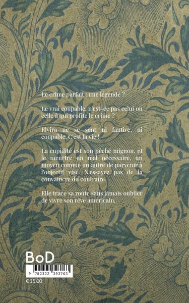Le crime parfait : une légende ?Le vrai coupable, n'est-ce pas celui ou celle à qui profite le crime ?Elvira ne se sent ni fautive, ni coupable. C'est la vie !La cupidité est son péché mignon, et le meurtre un mal nécessaire, un moyen comme un autre de parvenir à l'objectif visé. N'essayez pas de la convaincre du contraire.Elle trace sa route sans jamais oublier de vivre son rêve américain.