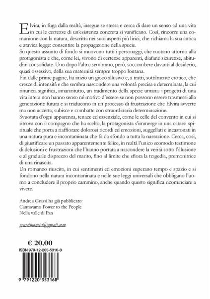 Elvira, in fuga dalla realtà, insegue se stessa e cerca di dare un senso ad una vita in cui le certezze di un'esistenza concreta si vanificano. Così, rincorre una comunione con la natura, descritta nei suoi aspetti più lirici, che richiama la sua antica e atavica legge: consentire la propagazione della specie. Su questo assunto di fondo si muovono tutti i personaggi, che ruotano attorno alla protagonista e che, come lei, vivono di certezze apparenti, diafane sicurezze, abitudini consolidate. Uno dopo l'altro sembrano, però, soccombere davanti al desiderio, quasi ossessivo, della sua maternità sempre troppo lontana. Fin dalle prime pagine, ha inizio un gioco allusivo e, a tratti, sottilmente erotico, che cresce di intensità e che sembra nascondere una volontà precisa e determinata, la cui rinuncia significa, innanzitutto, un tradimento della specie umana: i progetti di una vita intera non hanno senso né motivo d'essere se non possono essere trasmessi alla generazione futura e si traducono in un processo di frustrazione che Elvira avverte ma non accetta, subisce e combatte con straordinaria determinazione.