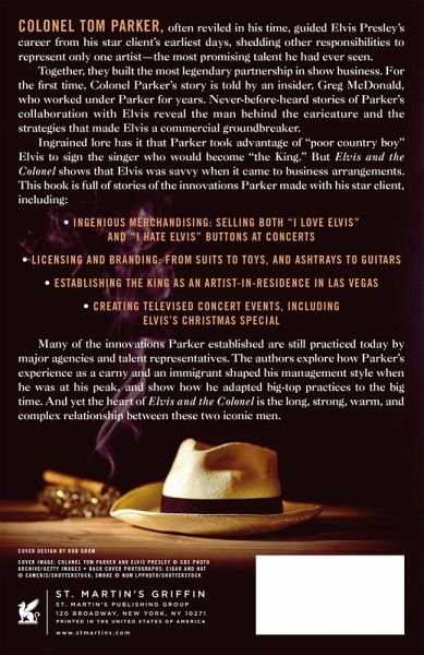 A fresh biography of legendary entertainment manager Colonel Tom Parker, with a contrarian and corrective point of view. Colonel Tom Parker, often reviled in his time, led the strategy from the earliest days of Elvis's career. Together, they built the most legendary partnership in show business. For the first time, Colonel Parker's story is told by an insider, Greg McDonald, who worked under Parker for years. Never-before-heard stories of Parker's collaboration with Elvis reveal the man behind the legend and the strategies that made Elvis a commercial groundbreaker. Ingrained lore has it that Parker took advantage of "poor country boy" Elvis to sign the singer who became "The King". But Elvis and the Colonel shows that Elvis was not foolish when it came to business arrangements. This book is full of stories of innovations Parker made with his star client, including: --ingenious merchandising (eg, selling both "I love Elvis" and "I hate Elvis" buttons) --licensing and branding, from suits to toys, ashtrays to guitars --establishing The King as an artist-in-residence in Las Vegas --creating televised concert events, like Elvis' Christmas special Many of the practices Parker established are still deployed today by most major agencies. Parker's experience as a carny and an immigrant shaped his management style when he was at his peak, showing how he adapted big top practices to the big time. The heart of Elvis and the Colonel is the long, strong, warm and complex relationship between two iconic men.