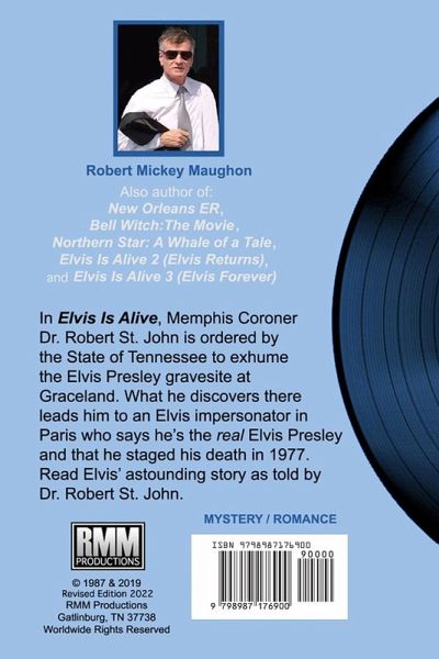 Is Elvis Presley is alive and well and living in Paris as, well... Elvis (technically, an Elvis impersonator)? Our "what if" story begins when a Memphis, TN Coroner, Dr. Robert St. John, exhumes Presley's body on orders from the State of Tennessee. What he discovers is unexpected and shocking. The clues in The King's grave at Graceland lead him to a Parisian impersonator who claims that he, the REAL Elvis Aaron Presley, faked his 1977 death. Writer Robert Mickey Maughon takes the reader on a spellbinding journey with Dr. St. John as he seeks to uncover the truth behind the grave site mystery. What unfolds in the fabled City Of Lights makes Elvis Is Alive a romance as well as a detective story, but Dr. St. John must focus clearly on his mission in order to discover whether this French man in the bejeweled jumpsuit is just a wanna-be glory grabber or true rock-and-roll royalty.