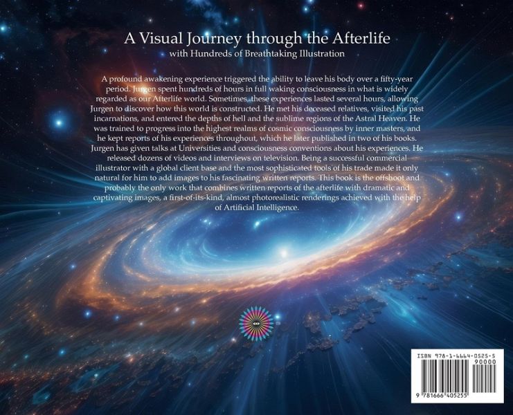Fifty years of astral exploration revealed in breathtaking AI images. For the first time, the afterlife is vividly revealed in color. Elysium Unveiled brings Jurgen Ziewe's five-decade odyssey beyond the body to life with nearly photoreal imagery. Trained in astral exploration and visual art, Ziewe spent hundreds of hours in conscious out-of-body states, meeting deceased loved ones, past lives, even both "hellish" underworlds and "sublime" celestial realms. His first OBE over fifty years ago "opened the door to a multidimensional universe and now those vistas are captured by cutting-edge AI. This new edition pairs his real-world accounts with dramatic illustrations - a first-of-its-kind combination of honest reportage and near-photoreal AI artistry. Far from mere fantasy, each scene is grounded in Ziewe's actual experience. The images are "unique interpretations" of states of consciousness, infused with vivid color and detail that invite the reader's imagination. Witness radiant astral cities, underwater gardens, and landscapes of emotion with an intimacy rarely seen outside dreams. For spiritual seekers, this journey is deeply transformative: themes of love, unity and creativity fill every page, embodying the "profound mysteries beyond ordinary perception. Blending credibility with wonder, Elysium Unveiled offers readers an inspiring glimpse of what may lie beyond. Sources: The author's own description confirms that Elysium Unveiled is drawn from "hundreds of hours" of real out-of-body experiences, and that advanced AI was used to generate "compelling and often photo-real visuals" of the afterlife. The book is explicitly described as the first work to combine firsthand afterlife reports with dramatic, nearly photoreal images, underscoring its originality and value.