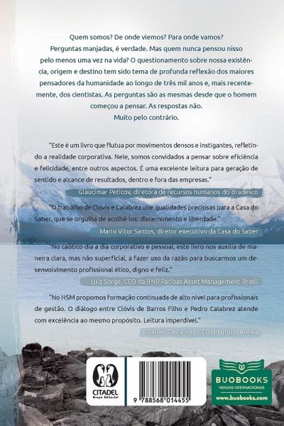 Quem somos? De onde viemos? Para onde vamos? Perguntas manjadas, é verdade. Mas quem nunca pensou nisso pelo menos uma vez na vida? O questionamento sobre nossa existência, origem e destino tem sido tema de profunda reflexão dos maiores pensadores da humanidade ao longo de três mil anos e, mais recentemente, dos cientistas. As perguntas são as mesmas desde que o homem começou a pensar. As respostas não. Muito pelo contrário. Filósofos e cientistas de todas as épocas e escolas têm se dedicado também a inquietações bem mais pessoais. O que devo fazer para viver melhor? O que acontece dentro de mim quando me apaixono? As respostas variam. E muito. Em busca de nós mesmos é uma pequena e agradável viagem pela história da evolução do pensamento e do conhecimento humano. O diálogo informal de Clóvis de Barros Filho e Pedro Calabrez apresenta respostas da filosofia (com as ideias de Aristóteles, Platão e Spinoza, entre outros) e das ciências da mente (psicologia e neurociências) ¿ e instiga o leitor a chegar a suas próprias conclusões. Clóvis e Calabrez aproximam a filosofia da ciência, revelando a complementaridade dessas visões. E aproximam ambas do leitor com um texto descontraído e acessível.