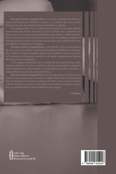 Em uma Conversa Jogada Fora é o terceiro trabalho da talentosa poeta pernambucana Andreza Crispim, e é evidente que sua jornada literária tem sido uma