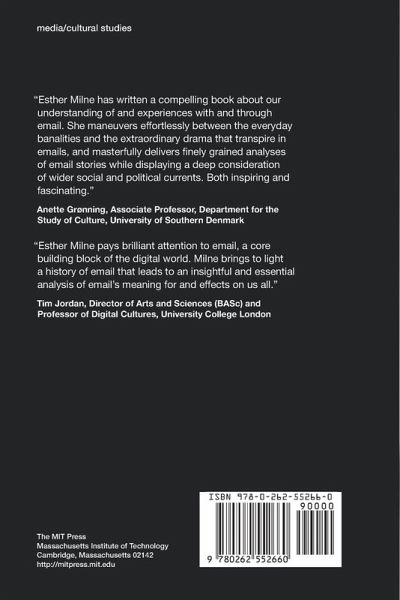 An exploration of how email is experienced, understood, and materially structured as a practice spanning our everyday domestic and work lives. Despite its many obituaries, email is not dead. As a global mode of business and personal communication, email outstrips newer technologies of online interaction; it is deeply embedded in our everyday lives. And yet--perhaps because the ubiquity of email has obscured its study--this is the first scholarly book devoted to email as a key historical, social, and commercial site of digital communication in our everyday lives. In Email and the Everyday, Esther Milne examines how email is experienced, understood, and materially structured as a practice spanning the domestic and institutional spaces of daily life. Email experiences range from the routine and banal to the surprising and shocking. Drawing on interviews and online surveys, Milne focuses on both the material and the symbolic properties of email. She maps the development of email as a technology and as an industry; considers institutional uses of email, including "bureaucratic intensity" of workplace email and the continuing vibrancy of email groups; and examines what happens when private emails end up in public archives, discussing the Enron email dataset and Hillary Clinton's infamous private server. Finally, Milne explores the creative possibilities of email, connecting eighteenth-century epistolary novels to contemporary "email novels," discussing the vernacular expression of ASCII art and mail art, and examining email works by Carl Steadman, Miranda July, and others.