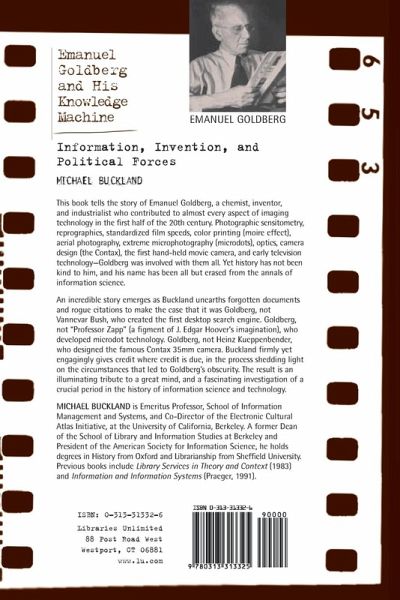 This book tells the story of Emanuel Goldberg, a chemist, inventor, and industrialist who contributed to almost every aspect of imaging technology in the first half of the 20th century. Despite his accomplishments, history has not been kind to Goldberg, a name all but erased from the annals of information science. An incredible story emerges as Michael Buckland unearths forgotten documents and rogue citations to show that, contrary to public opinion, Goldberg created the first desktop search engine, developed microdot technology, and designed the famous Contax 35 mm camera. A fascinating and illuminating tribute to a great mind and a crucial period in the history of information science and technology. An incredible story emerges as Buckland unearths forgotten documents and rogue citations to make the case that it was Goldberg, not Vannevar Bush, who created the first desktop search engine. Goldberg, not Professor Zapp (a figment of J. Edgar Hoover's imagination), who developed microdot technology. Goldberg, not Heinz Kueppenbender, who designed the famous Contax 35 mm camera. Buckland firmly yet engagingly gives credit where credit is due, in the process shedding light on the circumstances that led to Goldberg's obscurity. The result is an illuminating tribute to a great mind, and a fascinating investigation of a crucial period in the history of information science and technology.