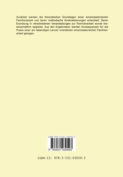 Die Absient, Familienarbeit in einer Weise durehzufUhren, die es Eltern er mOglicnt, mit Selbstandigkeit, Selbstvertrauen, Kompetenz und erweiterter Einsicnt in die Bedingungen und Zusammenhange von Erziehung mit ihren Kin dern umzugehen, garantiert noeh nient, daB eine solche emanzipatorisehe Orientierung in den Veranstultungen zur Familienarbeit durehgehalten wird. Eine Reihe von Faktoren oeeinfluBt die Arbeit mit Eltern. 1m vorliegenden Berient werden die tneoretiscnen Ooerlegungen und die praktisehen Erfahrun gen dargestel1t, die vor al1em die EinflUsse von Methoden, d. h. Arbeits und Vorgehensweisen (Themenzentrierte Interaktion, Gordon) der Gruppenlei x ter-innen und Organi~ationsformen, d. h. Kurs- und Kompaktveranstaltungen, heleuchten. Die Aussagen oasieren auf der Arbeit in einem Forsehungsvorha ben, das vom 01.02.1976 cis zum 31.12.1979 von Mitarbeitern der Sozialpada gogischen Forschungsgruppe im Fachbereich Erziehungswissensehaft der Padago gisch.en Hoehschule Runr (sel't dem 01.04.1980 Institut fUr Sozialpadagogik der Universitat Dortmund)unter dem Titel "Die Effektivitat ausgewahlter Methoden und Organisationsformen einer emanzipatorisehen Elternarbeit" dureh.gefUhrt wurde. Zentrales Anliegen des Forseh:ungsprojektes war es, neben der Feststel1ung moglicher Ergebnisse von Familienarbeit (Produkteffektivitat) aueh der Frage naenzugehen, wie- d.h. auf welehem I~ege - solehe Ergebnisse zustande kom men (ProzeBeffektivitat). Der Berieht ist in drei Teile gegliedert, wobei jewei ls di e Sehwerpunkte eher im theoreti sehen (Teil I), empi ri sehen (Teil II) und innaltlieh-politisehen (Teil III) Bereich liegen.