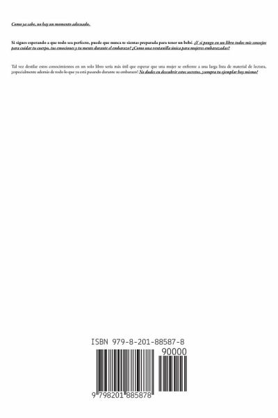 Como ya sabe, no hay un momento adecuado. Si sigues esperando a que todo sea perfecto, puede que nunca te sientas preparada para tener un bebé. ¿Y si pongo en un libro todos mis consejos para cuidar tu cuerpo, tus emociones y tu mente durante el embarazo? ¿Como una ventanilla única para mujeres embarazadas? Tal vez destilar estos conocimientos en un solo libro sería más útil que esperar que una mujer se enfrente a una larga lista de material de lectura, ¡especialmente además de todo lo que ya está pasando durante su embarazo! No dudes en descubrir estos secretos, ¡compra tu ejemplar hoy mismo!