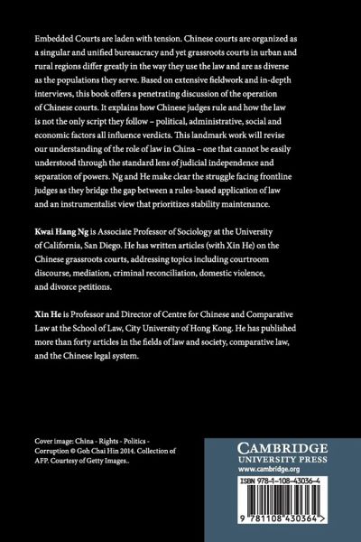 Kwai Hang Ng is Associate Professor of Sociology at the University of California, San Diego. He has written a series of articles (with Xin He) on different aspects of the Chinese grassroots courts, addressing topics including courtroom discourse, mediation, criminal reconciliation, domestic violence, and divorce petitions. Ng's previous book, The Common Law in Two Voices: Language, Law, and the Postcolonial Predicament in Hong Kong (2009), was a recipient of a Distinguished Book Award from the American Sociological Association's Sociology of Law Section in 2010.