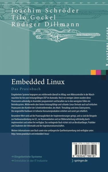 "Dass der produktive Umgang mitEmbedded-Systemen fast so leicht fällt wie das Handhaben allltäglicher Gebrauchselektronik, das zeigt das Autorentrio Joachim Schröder, Tilo Gockel und Rüdiger Dillmann in 'Embedded Linux'. ... Auführliche Abschnitte beschreiben den generellen Umgang mit Legacy-Schnittstellen, USB, dem I2C-Bus sowie die Programmierung von Gerätetreibern und Kernelmodulen, Multithreading, die Netzwerkkommunikation und V4L. Dabei würzen die Atuoren die profunden Ausfürhungen mit eingängigen Beispielen aus der Praxis. Ein ausführlicher anhang mit Beschreibungen des wichtigsten Embedded-Linux-Handwerkszeugs macht das Buch obendrein zum nützlichen Nachschlagewerk. Falls Sie also schon immer einmal den Einstieg in die spannende Welt von Linux auf eingebetteten Systemen wagen wollen, dann greifen Sie hier zu: "Embedded Linux" macht Ihnen die ersten Schritte leicht."