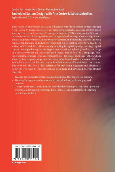This textbook introduces basic and advanced embedded system topics through Arm Cortex M microcontrollers, covering programmable microcontroller usage starting from basic to advanced concepts using the STMicroelectronics Discovery development board. Designed for use in upper-level undergraduate and graduate courses on microcontrollers, microprocessor systems, and embedded systems, the book explores fundamental and advanced topics, real-time operating systems via FreeRTOS and Mbed OS, and then offers a solid grounding in digital signal processing, digital control, and digital image processing concepts - with emphasis placed on the usage of a microcontroller for these advanced topics. The book uses C language, "the" programming language for microcontrollers, C++ language, and MicroPython, which allows Python language usage on a microcontroller. Sample codes and course slides are available for readers and instructors, and a solutions manual is available to instructors. The book will also be an ideal reference for practicing engineers and electronics hobbyists who wish to become familiar with basic and advanced microcontroller concepts.
