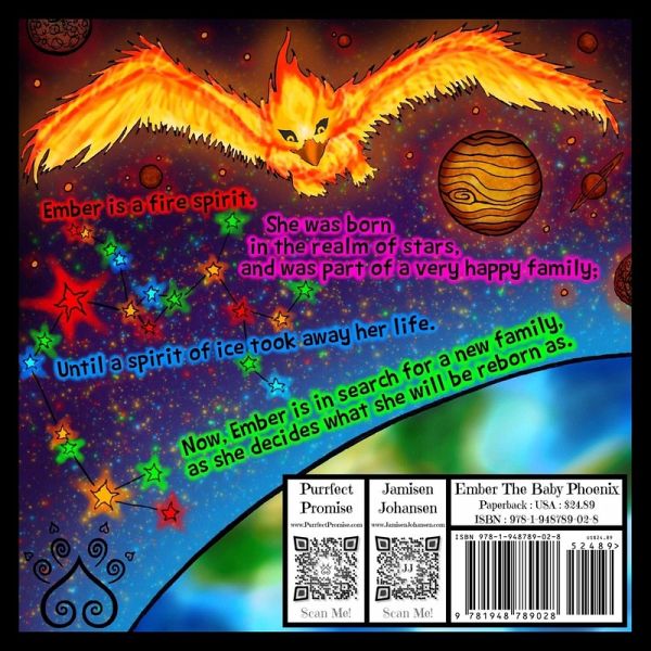 Ember is a fire spirit. She was born in the realm of stars, and was part of a very happy family; Until a spirit of ice took away her life. Now, Ember is in search for a new family, as she decides what she will be reborn as.