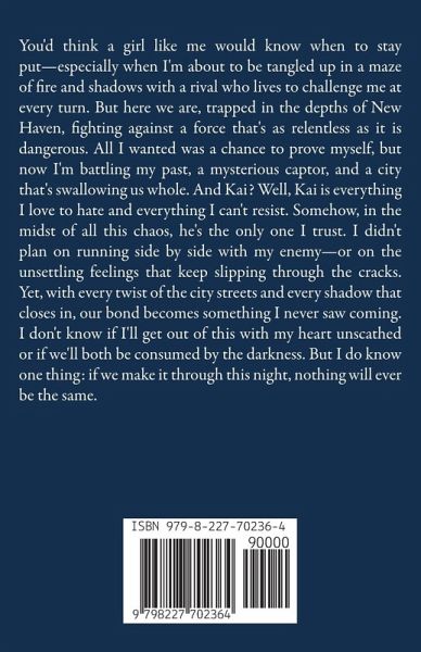 You'd think a girl like me would know when to stay put-especially when I'm about to be tangled up in a maze of fire and shadows with a rival who lives to challenge me at every turn. But here we are, trapped in the depths of New Haven, fighting against a force that's as relentless as it is dangerous. All I wanted was a chance to prove myself, but now I'm battling my past, a mysterious captor, and a city that's swallowing us whole. And Kai? Well, Kai is everything I love to hate and everything I can't resist. Somehow, in the midst of all this chaos, he's the only one I trust. I didn't plan on running side by side with my enemy-or on the unsettling feelings that keep slipping through the cracks. Yet, with every twist of the city streets and every shadow that closes in, our bond becomes something I never saw coming. I don't know if I'll get out of this with my heart unscathed or if we'll both be consumed by the darkness. But I do know one thing: if we make it through this night, nothing will ever be the same.