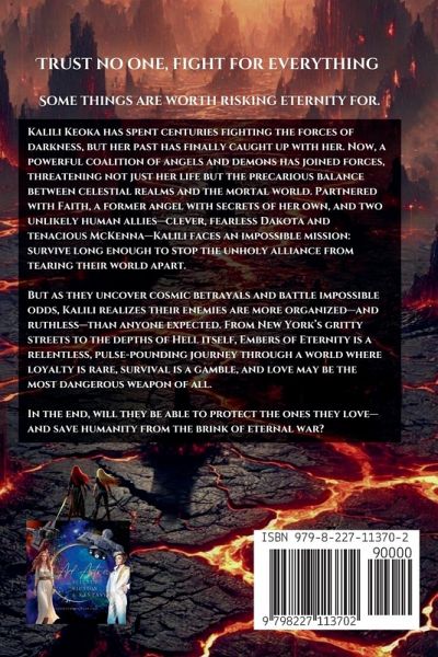Trust no one, fight for everything. Kalili Keoka thought she'd left the world of cosmic battles and celestial betrayals far behind. But when an unholy alliance of angels and demons erupts onto the scene, old friends Dakota Chase and McKenna Cross are dragged back into the chaos alongside Kalili and her partner Faith-a former angel who's no stranger to the treacherous games of the immortal realm. Dakota and McKenna, seasoned thieves with a knack for survival, quickly realize that the stakes have never been higher. Valaferion, a ruthless Duke of Hell, and his allies-an archangel, an archdemon, and a deadly principality-are bent on shifting the balance of power forever, and Kalili's at the center of their plan. As the four friends plunge into battles against impossible odds, they'll need every skill, every weapon, and every bond of loyalty to survive the onslaught. From gritty city streets to the fiery depths of Hell, their journey is one of relentless action, dangerous secrets, and unwavering friendships. But as the final showdown looms, Kalili knows that courage may not be enough to save them-and the price of victory could be far greater than any of them are prepared to pay. Embers of Eternity is a high-stakes, heart-pounding journey where loyalty and love are the ultimate weapons in a world on the edge of ruin.