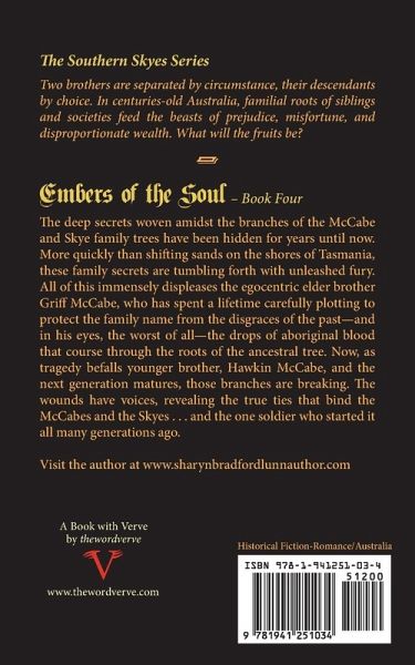 Two brothers are separated by circumstance, their descendants by choice. In centuries-old Australia, familial roots of siblings and societies feed the beasts of prejudice, misfortune, and disproportionate wealth. What will the fruits be? Embers of the Soul - Book FourThe deep secrets woven amidst the branches of the McCabe and Skye family trees have been hidden for years until now. More quickly than shifting sands on the shores of Tasmania, these family secrets are tumbling forth with unleashed fury. All of this immensely displeases the egocentric elder brother Griff McCabe, who has spent a lifetime carefully plotting to protect the family name from the disgraces of the past-and in his eyes, the worst of all-the drops of aboriginal blood that course through the roots of the ancestral tree. Now, as tragedy befalls younger brother, Hawkin McCabe, and the next generation matures, those branches are breaking. The wounds have voices, revealing the true ties that bind the McCabes and the Skyes . . . and the one soldier who started it all many generations ago. Visit the author at www.sharynbradfordlunnauthor.com