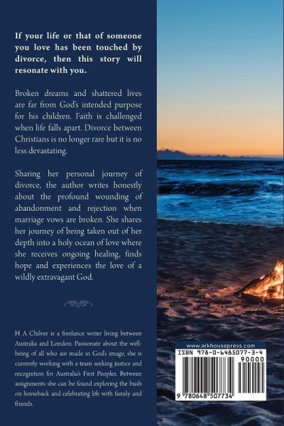 If your life or that of someone you love has been touched by divorce, then this story will resonate with you. Broken dreams and shattered lives are far from God's intended purpose for his children. Faith is challenged when life falls apart. Divorce between Christians is no longer rare but it is no less devastating. Sharing her personal journey of divorce, the author writes honestly about the profound wounding of abandonment and rejection when marriage vows are broken. She shares her journey of being taken out of her depth into a holy ocean of love where she receives ongoing healing, finds hope and experiences the love of a wildly extravagant God.