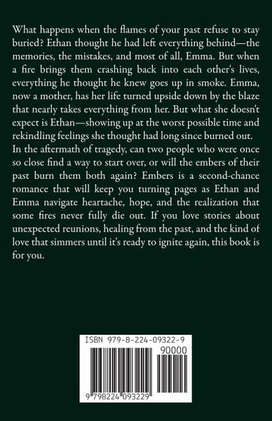 What happens when the flames of your past refuse to stay buried? Ethan thought he had left everything behind-the memories, the mistakes, and most of all, Emma. But when a fire brings them crashing back into each other's lives, everything he thought he knew goes up in smoke. Emma, now a mother, has her life turned upside down by the blaze that nearly takes everything from her. But what she doesn't expect is Ethan-showing up at the worst possible time and rekindling feelings she thought had long since burned out. In the aftermath of tragedy, can two people who were once so close find a way to start over, or will the embers of their past burn them both again? Embers is a second-chance romance that will keep you turning pages as Ethan and Emma navigate heartache, hope, and the realization that some fires never fully die out. If you love stories about unexpected reunions, healing from the past, and the kind of love that simmers until it's ready to ignite again, this book is for you.