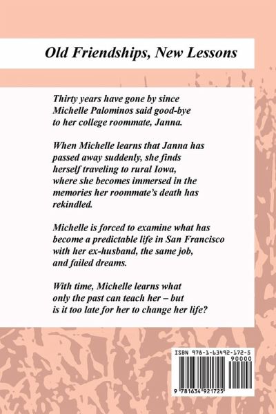 Michelle and Janna were roommates in college in San Francisco before they said goodbye to one another, and went their separate ways. Thirty years later, Michelle learns that Janna has passed away suddenly, and left her in charge of her legal affairs. Michelle finds herself traveling to the farming community of rural Iowa where she becomes entangled in the life her college roommate left behind. In the process, she is forced to examine what has become her own predictable life in San Francisco with her ex-husband, the same job, and failed dreams. With time, Michelle learns what only the past can teach her, and faces the decision of how to navigate the rest of her life...
