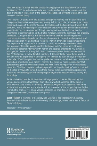In the context of rapid fertility decline and huge growth in the fertility industry, this volume is even more relevant today than when it was first published at the dawn of what Franklin calls the era of 'iFertility'. Embodied Progress is an essential read for all social science academics and students with an interested in the burgeoning new field of reproductive studies. It is also a valuable resource for practitioners working in the fields of reproductive health, biomedicine and policy.