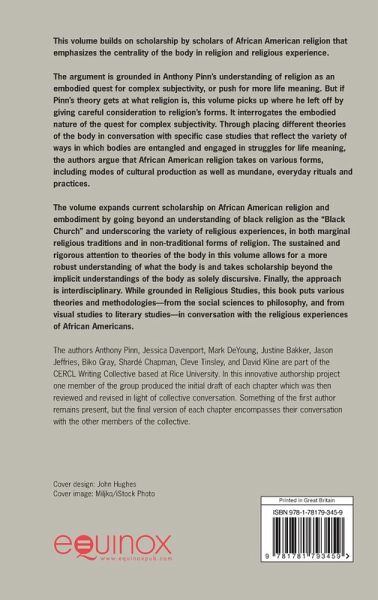 This volume builds on scholarship by scholars of African American religion that emphasizes the centrality of the body in religion and religious experience. The argument is grounded in Anthony Pinn's understanding of religion as an embodied quest for complex subjectivity, or push for more life meaning. But if Pinn's theory gets at what religion is, this volume picks up where he left off by giving careful consideration to religion's forms. It interrogates the embodied nature of the quest for complex subjectivity. Through placing different theories of the body in conversation with specific case studies that reflect the variety of ways in which bodies are entangled and engaged in struggles for life meaning, the authors argue that African American religion takes on various forms, including modes of cultural production as well as mundane, everyday rituals and practices. The volume expands current scholarship on African American religion and embodiment by going beyond an understanding of black religion as the "Black Church" and underscoring the variety of religious experiences, in both marginal religious traditions and in non-traditional forms of religion. The sustained and rigorous attention to theories of the body in this volume allows for a more robust understanding of what the body is and takes scholarship beyond the implicit understandings of the body as solely discursive. Finally, the approach is interdisciplinary. While grounded in Religious Studies, this book puts various theories and methodologies-from the social sciences to philosophy, and from visual studies to literary studies-in conversation with the religious experiences of African Americans.