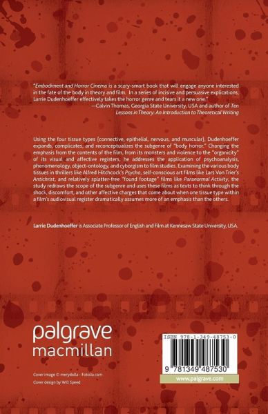 Using the four tissue types (connective, epithelial, nervous, and muscular), Dudenhoeffer expands and complicates the subgenre of "body horror." Changing the emphasis from the contents of the film to the "organicity" of its visual and affective registers, he addresses the application of psychoanalysis, phenomenology, object-ontology, and cyborgism.