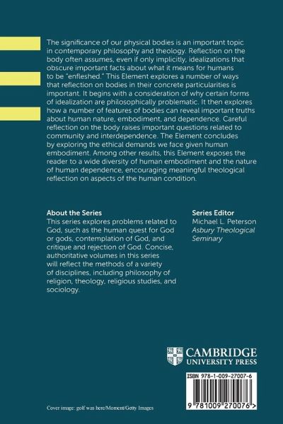 This Element explores the importance of reflection on bodies for philosophy and theology. It begins with a consideration of why certain forms of idealization are problematic. Careful reflection raises questions related to community and interdependence. It shows the diversity of human embodiment and the nature of human dependence.