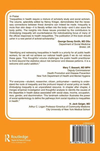 To advance the epidemiological analysis of social inequalities in health, and of the ways in which population distributions of disease, disability, and death reflect embodied expressions of social inequality, this volume draws on articles published in the "International Journal of Health Services" between 1990 and 2000. Framed by ecosocial theory, it employs ecosocial constructs of "embodiment"; "pathways of embodiment"; "cumulative interplay of exposure, susceptibility, and resistance across the lifecourse"; and "accountability and agency" to address the question; and who and what drives current and changing patterns of social inequalities in health.