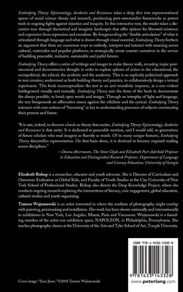 "It is rare, indeed, to discover a book on theory that excites. Embodying Theory: Epistemology, Aesthetics and Resistance is that rarity. It is dedicated to peaceable warriors, and I would add, to generations of future scholars who read imagery as fluently as words. Of its many unique features, Embodying Theory demystifies representation. On that basis alone, it is destined to become required reading across disciplines." -Donna Alvermann, The Omer Clyde and Elizabeth Parr Aderhold Professor in Education and Distinguished Research Professor, Department of Language and Literacy Education, University of Georgia