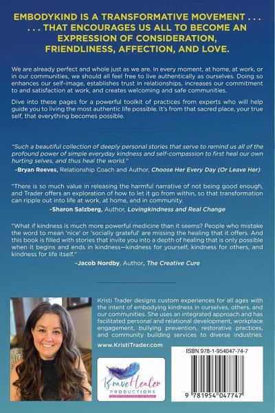 EmbodyKind is a transformative movement . . . . . . that encourages us all to become an expression of consideration, friendliness, affection, and love. We are already perfect and whole just as we are. In every moment, at home, at work, or in our communities, we should all feel free to live authentically as ourselves. Doing so enhances our self-image, establishes trust in relationships, increases our commitment to and satisfaction at work, and creates welcoming and safe communities. Dive into these pages for a powerful toolkit of practices from experts who will help guide you to living the most authentic life possible. It's from that sacred place, your true self, that everything becomes possible.