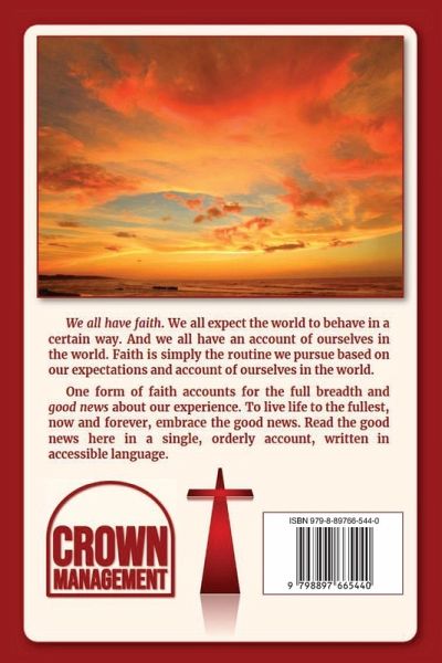 We all have faith. We all expect the world to behave in a certain way. And we all have an account of ourselves in the world. Faith is simply the routine we pursue based on our expectations and account of ourselves in the world. One form of faith accounts for the full breadth and good news about our experience. To live life to the fullest, now and forever, embrace the good news. Read the good news here in a single, orderly account, written in accessible language.