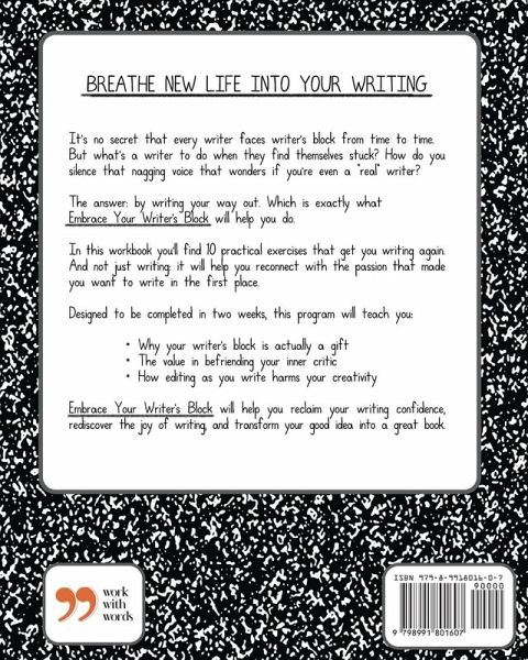 Breathe new life into your writing It's no secret that every writer faces writer's block from time to time. But what's a writer to do when they find themselves stuck? How do you silence that nagging voice that wonders if you're even a "real" writer? The answer: by writing your way out. Which is exactly what Embrace Your Writer's Block will help you do. In this workbook you'll find 10 practical exercises that get you writing again. And not just writing: it will help you reconnect with the passion that made you want to write in the first place. Designed to be completed in two weeks, this program will teach you: * Why your writer's block is actually a gift * The value in befriending your inner critic * How editing as you write harms your creativity Embrace Your Writer's Block will help you reclaim your writing confidence, rediscover the joy of writing, and transform your good idea into a great book.