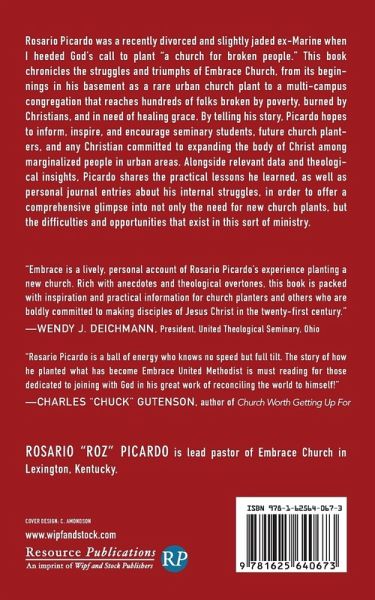 Rosario Picardo was a recently divorced and slightly jaded ex-Marine when he heeded God's call to plant "a church for broken people." This book chronicles the struggles and triumphs of Embrace Church, from its beginnings in his basement as a rare urban church plant to a multi-campus congregation that reaches hundreds of folks broken by poverty, burned by Christians, and in need of healing grace. By telling his story, Picardo hopes to inform, inspire, and encourage seminary students, future church planters, and any Christian committed to expanding the body of Christ among marginalized people in urban areas. Alongside relevant data and theological insights, Picardo shares the practical lessons he learned, as well as personal journal entries about his internal struggles, in order to offer a comprehensive glimpse into not only the need for new church plants, but the difficulties and opportunities that exist in this sort of ministry.