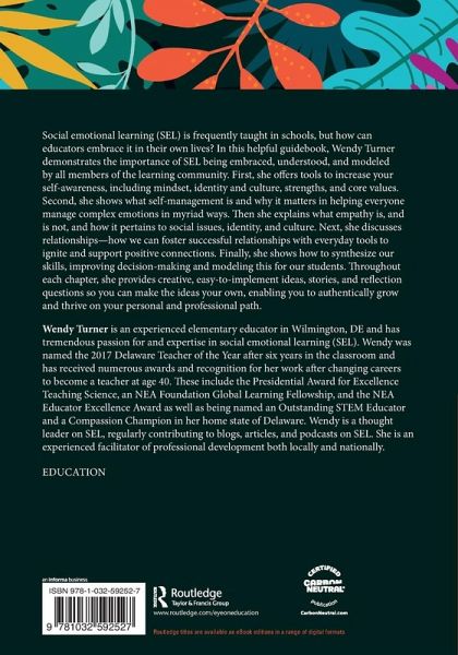 Social emotional learning (SEL) is frequently taught in schools, but how can educators embrace it in their own lives? In this helpful guidebook, Wendy Turner demonstrates the importance of SEL being embraced, understood, and modeled by all members of the learning community. First, she offers tools to increase your self-awareness, including mindset, identity and culture, strengths, and core values. Second, she shows what self-management is and why it matters in helping everyone manage complex emotions in myriad ways. Then she explains what empathy is, and is not, and how it pertains to social issues, identity, and culture. Next, she discusses relationships-how we can foster successful relationships with everyday tools to ignite and support positive connections. Finally, she shows how to synthesize our skills, improving decision-making and modeling this for our students. Throughout each chapter, she provides creative, easy-to-implement ideas, stories, and reflection questions so you can make the ideas your own, enabling you to authentically grow and thrive on your personal and professional path.