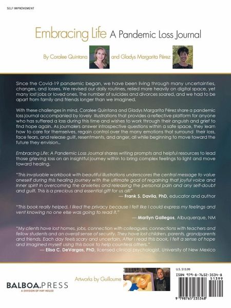 Since the Covid-19 pandemic began, we have been living through many uncertainties, changes, and losses. We have revised our daily routines, relied more heavily on digital space, and many have lost jobs and loved ones. The number of suicides and divorces has soared, and we've had to be apart from some family and friends for longer than we imagined. With these challenges in mind, Coralee Quintana and Gladys Margarita Pérez share a pandemic loss journal accompanied by lovely illustrations that provides a reflective platform for anyone who has suffered a loss during this time and wishes to work through their anguish and grief to find hope again. As journalers answer introspective questions within a safe space, they learn how to care for themselves, regain control over the many emotions that surround their loss, face fears, and release guilt, resentments, and anger, all while beginning to move toward the future they envision.. Embracing Life: A Pandemic Loss Journal shares writing prompts and helpful resources to lead those grieving loss on an insightful journey within to bring complex feelings to light and move toward healing. "This invaluable workbook with beautiful illustrations underscores the central message to value oneself during this healing journey with the ultimate goal of regaining that joyful voice and inner spirit in overcoming the anxieties and releasing the personal pain and any self-doubt and guilt. This is a precious and essential gift for us all!" -Frank S. Davila, PhD, educator and author "This book really helped. I liked the privacy because I felt like I could express my feelings and vent knowing no one else was going to read it." -Marilyn Gallegos, Albuquerque, NM "My clients have lost homes, jobs, connection with colleagues, connections with teachers and fellow students and an overall sense of security. They have lost children, parents, grandparents and friends. Each day feels scary and uncertain. After I read this book, I felt a sense of hope and imagined myself using this book to help countless others." -Elisa C. DeVargas, PhD, licensed clinical psychologist, University of New Mexico