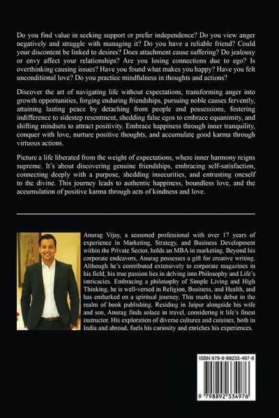 Do you find value in seeking support or prefer independence? Do you view anger negatively and struggle with managing it? Do you have a reliable friend? Could your discontent be linked to desires? Does attachment cause suffering? Do jealousy or envy affect your relationships? Are you losing connections due to ego? Is overthinking causing issues? Have you found what makes you happy? Have you felt unconditional love? Do you practice mindfulness in thoughts and actions? Discover the art of navigating life without expectations, transforming anger into growth opportunities, forging enduring friendships, pursuing noble causes fervently, attaining lasting peace by detaching from people and possessions, fostering indifference to sidestep resentment, shedding false egos to embrace equanimity, and shifting mindsets to attract positivity. Embrace happiness through inner tranquility, conquer with love, nurture positive thoughts, and accumulate good karma through virtuous actions. Picture a life liberated from the weight of expectations, where inner harmony reigns supreme. It's about discovering genuine friendships, embracing self-satisfaction, connecting deeply with a purpose, shedding insecurities, and entrusting oneself to the divine. This journey leads to authentic happiness, boundless love, and the accumulation of positive karma through acts of kindness and love.